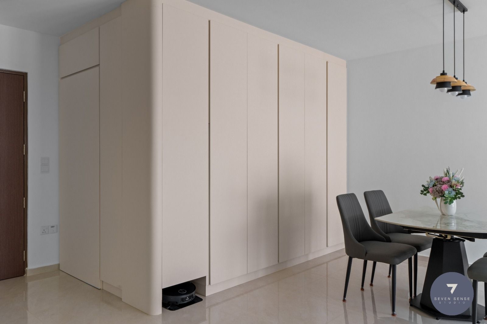 Designed by Liangwei of 7 Sense Studio, this 112 sqm new flat was renovated within 8 weeks, delivering a clean, cohesive interior that prioritises comfort, storage efficiency, and timeless appeal.